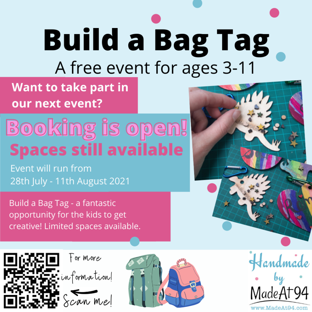 Our Build A Bag Tag event was a really fun and free opportunity for the kids to get involved with – even better it ran over the Summer Holidays so it was the ideal activity to entertain the kids. This event ran over 2 weeks and we had lots and lots of kids coming along to design their very own cool bag tag to decorate their schools bags and help them get ready for returning for the new term. The kids also benefited from an educational activity pack to take away from Play Talk Read – Parent Club.