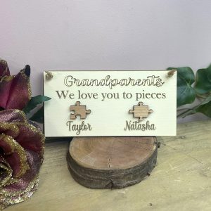 Personalised Wooden Grandparents Love You To Pieces Plaque