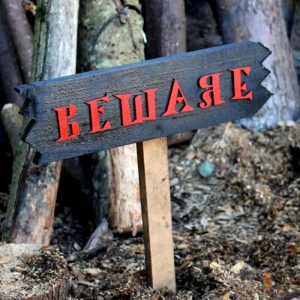 Wooden Outdoor Beware Sign for Halloween
