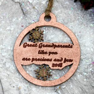 This could be your Personalised Rose Gold Christmas Great Grandparents Bauble. It’s perfect for your Great Grandparents to hang on their Christmas tree.
