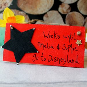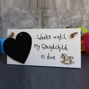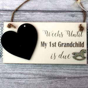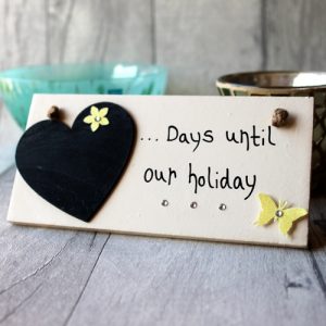 Cut by hand, this wooden plaque is then prepared and painted in house. (This is the same for all our plaque gifts.)The plaque includes chalk to write your weight goals, decorated with a little wooden heart and ribbon. approx 15.6cm x 7.6cm x 0.6cm Includes hanging twine.
