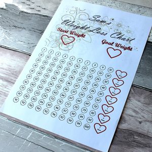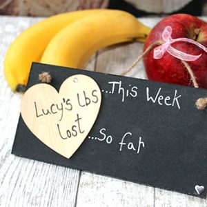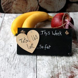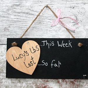 Wooden plaque painted with chalkboard paint for you to track your weekly weight loss and total loss so far. A great motivator! The wooden painted Heart measures approx 6cm personalised. Available with your name or just simply “total lbs lost” if you want. Hanging from Jute twine with bow in colour of your choice from the drop down menu and little wooden heart embellishments