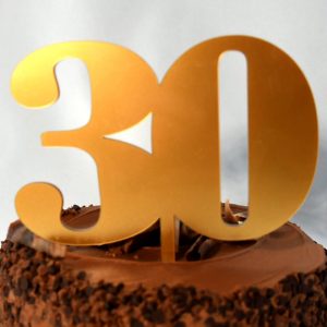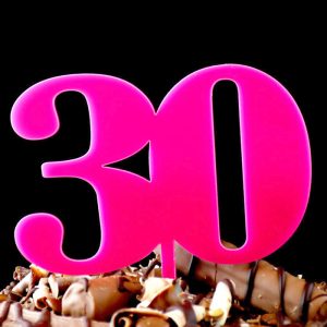 This 30th “Birthday Cake Topper” is the perfect addition to a lovely birthday cake. It adds something special to the big blowing of the candles and photo opportunity. Select the colour you want and the age for the cake topper.