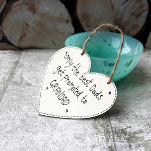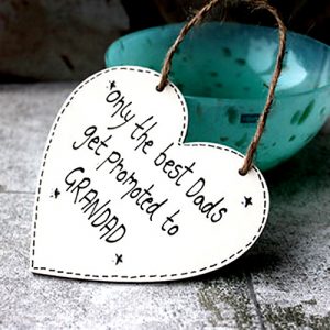 1 x 12cm Only The Best Dads Get Promoted To Grandad Cream Wooden Hanging Heart