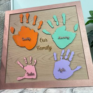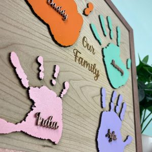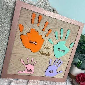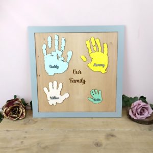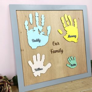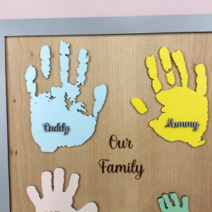 Create your very own family handprint gift frame, made to your exact hand size print for the perfect gift.