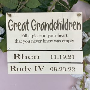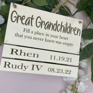 This personalised Great Grandparent plaque, makes the sweetest Birthday, Mother’s/Father’s Day or Christmas gift for the special grandparents in your life.