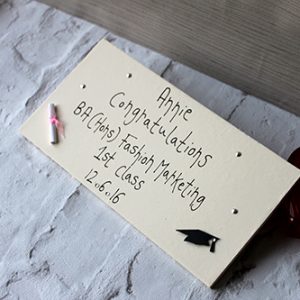 Personalise your college graduation gifts for friends Sign and choose the hanging version or desktop version. This “Congratulations” personalised graduation present ideas plaque makes the perfect gift for Graduation as a gift for new Graduates. These plaques are great for any deserving Graduate. Show this year’s graduate they are the best! This is a BIG plaque and measures a huge 8 x 5 inches. It sits great on the kitchen / living room side or on a shelf.