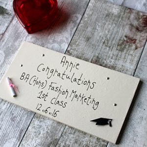 Are you looking for some graduation gifts for her UK? Then this plaque would make the ideal gift for a graduate today! Let the graduate know how much you appreciate them! Have a look at our product range and choose one of our unique personalised plaques for your Graduate on their very special occasion. Your Graduate will love being reminded that they Graduated!