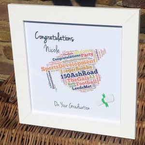 Are you looking for some graduation present ideas? This personalised frame would make excellent graduation present ideas, and is the perfect keepsake for you or your very special friend this year! The frame can be personalised in colour between white or black, the print is professionally printed on 230gsm photo paper, and measures 8×8 inches in size. Have a look at our graduation product range and choose one of our unique graduations for that special someone who is celebrating there graduation. They will love being reminded that they graduated!