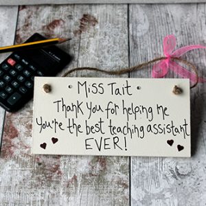 Create your bespoke teacher assistant gift personalised plaque that are made by hand and make an an impact. Personalised Teacher Gift Plaques make great presents for favourite teacher! Let your Teacher know how much you appreciate their help and have a look at our product range to choose one of our unique gifts for teachers.