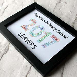 Are you looking for some graduation presents? This personalised print for primary school leavers is a great keepsake for graduation presents. You can have all your class friends, and teachers names! The frame can be personalised in colour between white or black, the print is professionally printed on 230gsm photo paper, and measures 8×8 inches in size. Have a look at our graduation product range and choose one of our unique graduations for that special someone who is celebrating there graduation. They will love being reminded that they graduated!