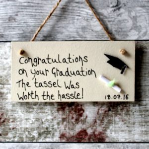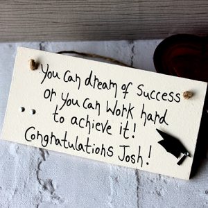 Personalise your white university graduation gifts for boyfriend Frame and add your own unique words. Our graduation frame measures 8inches by 8inches approx is handwritten, handmade and professionally made in the UK! It can hang from any wall, door or any other possible place you could hang a plaque from, with the natural twine which is included.