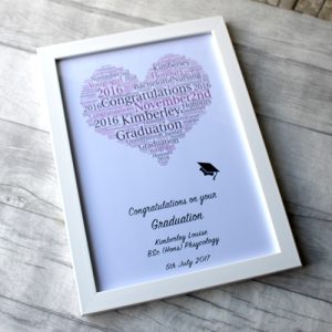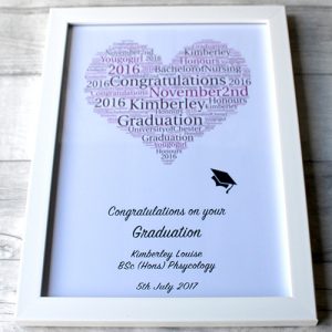 Are you looking for some gift ideas for university students? This personalised frame would make some great keepsake gift ideas for university students. Give the person graduating, this very special frame today! The frame can be personalised in colour between white or black, the print is professionally printed on 230gsm photo paper, and measures 8×8 inches in size. Have a look at our graduation product range and choose one of our unique graduations for that special someone who is celebrating there graduation. They will love being reminded that they graduated!